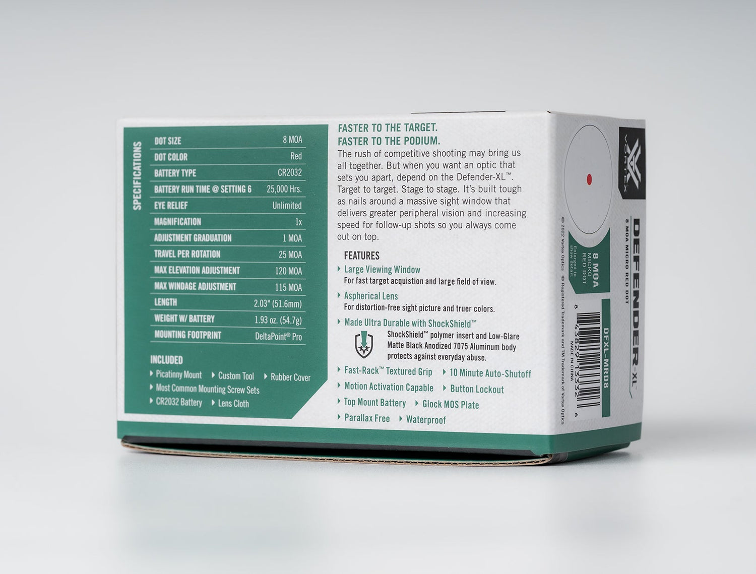 Izstrādāts ar īpaši platu tēmēšanas logu ātrākai mērķu maiņai, Defender-XL ir izturīgs, sacensībām gatavs mikro kolimators, kas lieliski piemērots arī dienesta vai šautuves pistolei, kā arī karabīnēm/šautenēm, izmantojot komplektā iekļauto Picatinny sliedes stiprinājumu.